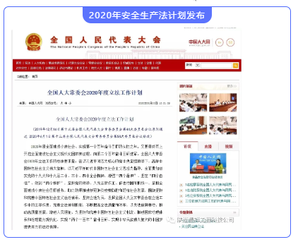6月20日,全國人大常委會2020年度立法工作計劃在其官網上公布。根據計劃,今年將修改安全生產法、突發事件應對法等。
